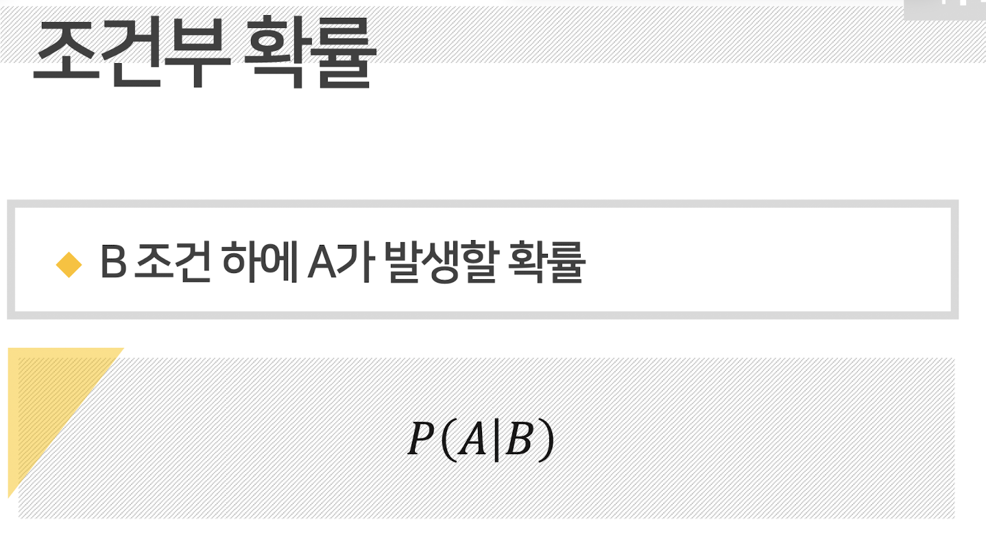 표본 공간 (sample space) : 확률적 실험의 모든 가능한 결과 집합사건(event): 표본 공간의 부분집합Q. 동전을 던져서 앞면(H)과 뒷면(T)이 나온다면 표본공간과 모든 사건을 나열하여라.A. 표본공간 = {H, T}사건 = { },{H},{T},{H,T}Q. 엔진 수명의 표본공간과 10년보다 긴 사건은?A.표본공간 = { T | T >= 0}10년보다 긴 사건 = {T | T > 10}Q. 주사위 던지기. A: 짝수 사건, B: 3의 배수 사건S={1,2,3,4,5,6}A ={2,4,6}B={3,6}\( A^c\) = {1,3,5}AUB = {2,3,4,6}\(A\cap B\) = {6}A-B = {2,4}